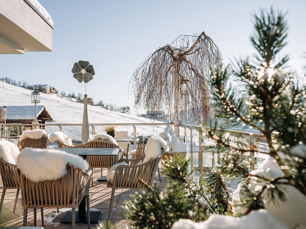 jedinečné výhľady na horské panorámy#krásne wellness centrum s rozlohou 2 000 m² s bazénom, vírivkou a viacerými saunami#vkusné zariadenie v tradičnom juhotirolskom štýle#súkromný skibus k dispozícii výhradne pre hotelových hostí#obmedzená ponuka večernej zábavy v blízkom okolí hotela (-) |