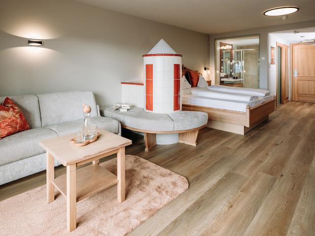 sociálne zariadenie; balkón s panoramatickým výhľadom #Junior Suite South 2/3/4: 41 m² - izba s manželskou posteľou a prípadne rozkladacím gaučom pre 2 osoby do 14 rokov, sociálne zariadenie s vaňou, balkón s panoramatickým výhľadom |