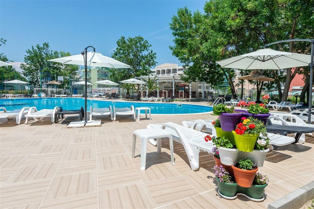 vstupná hala s recepciou • zmenáreň • trezory na recepcii za poplatok • výťah • reštaurácia • denný bar • detské ihrisko • vonkajší fitness • vonkajší bazén • detský bazén • bar pri bazéne • slnečníky a ležadlá pri bazéne zdarma • možnosť WiFi pripojenia zdarma • za poplatok - stolný tenis • tenisový kurt cca 5 €/hod. • možnosť parkovania pri hoteli cca 6 €/deň (obmedzený počet)