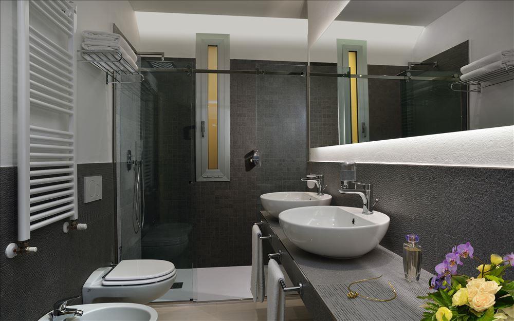 Pokoje o rozloze cca 20 m2 jsou vybavené vlastním sociálním zařízením, fénem, klimatizací, trezorem, mini ledničkou, županem, telefonem, SAT/TV a WiFi připojením. Pokoje mají francouzský balkon. Maximální obsazení pokoje jsou 2 dospělé osoby a 2 děti do 17,99 let.