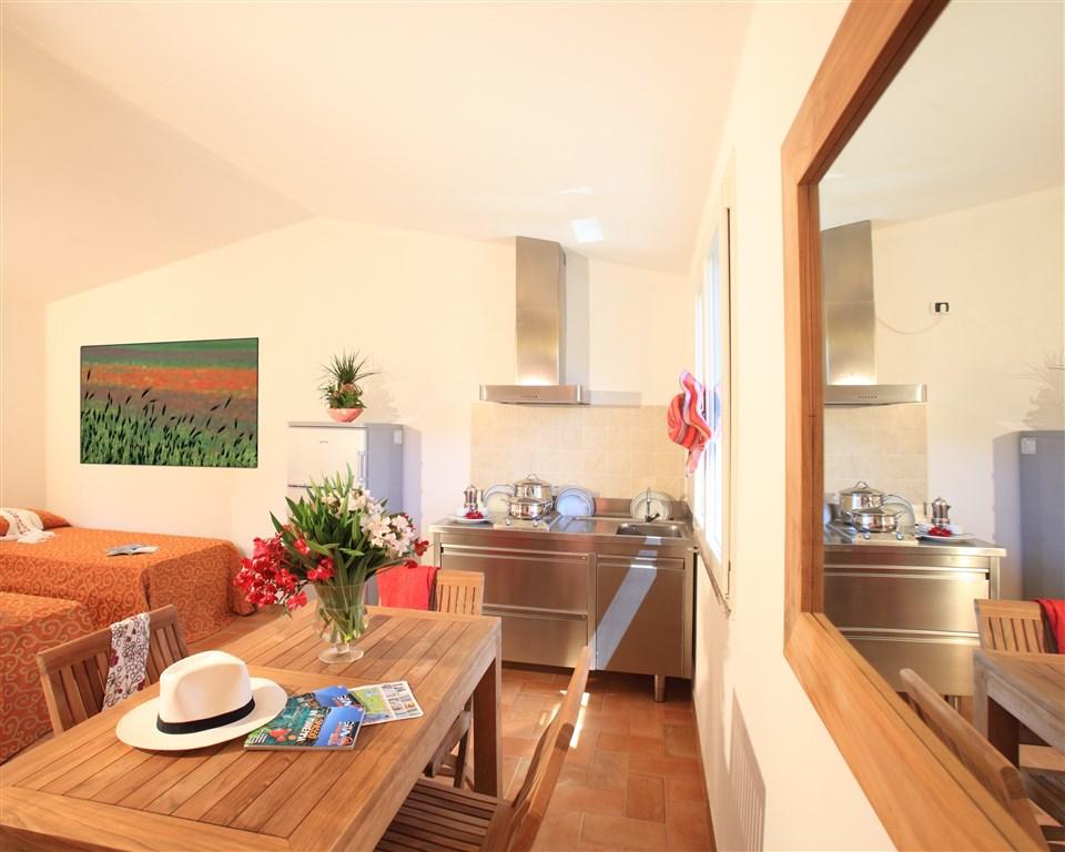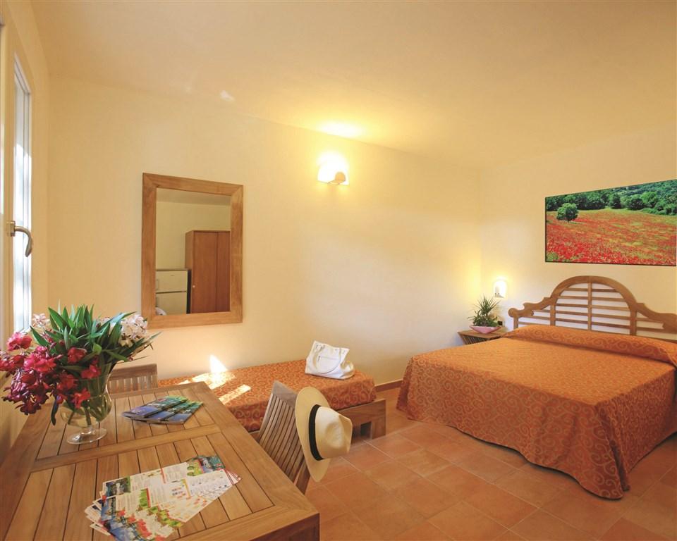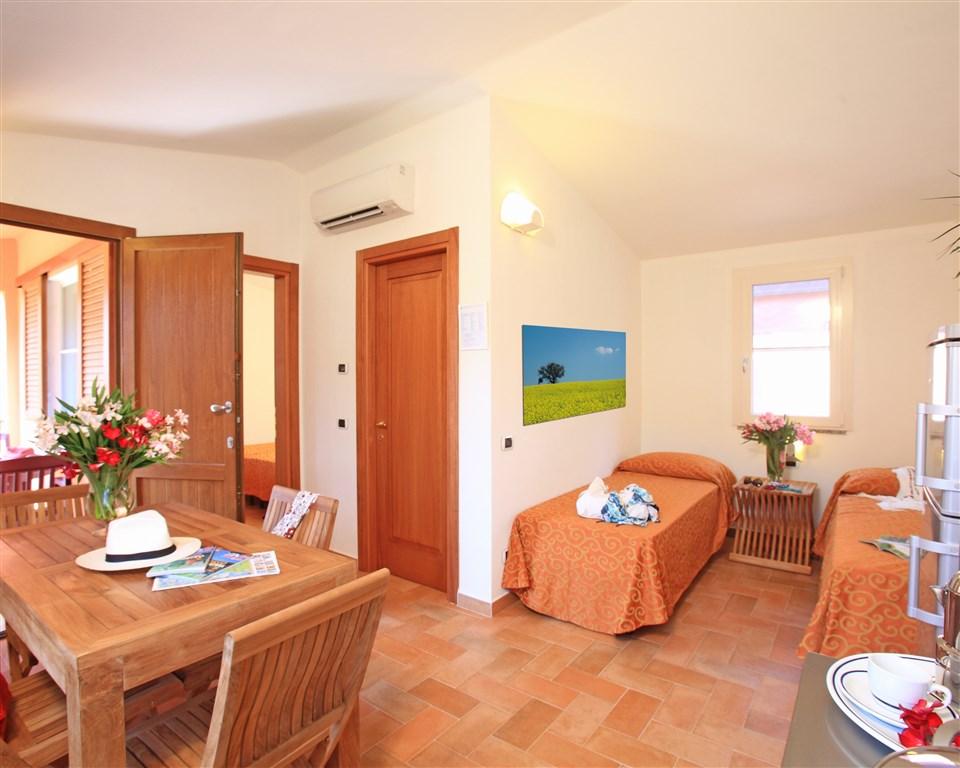 APP BILO pre 4 osoby - spálňa s manželskou posteľou • obývacia izba s kuchynským kútom • dve samostatné lôžka • sociálne zariadenie (sprcha/WC) • klimatizácia • chladnička • terasa • piate lôžko na vyžiadanie (za príplatok cca 10 €/noc - platba na mieste) • apartmány sú umiestnené v jednopodlažných vilkách, obklopených zeleňou |