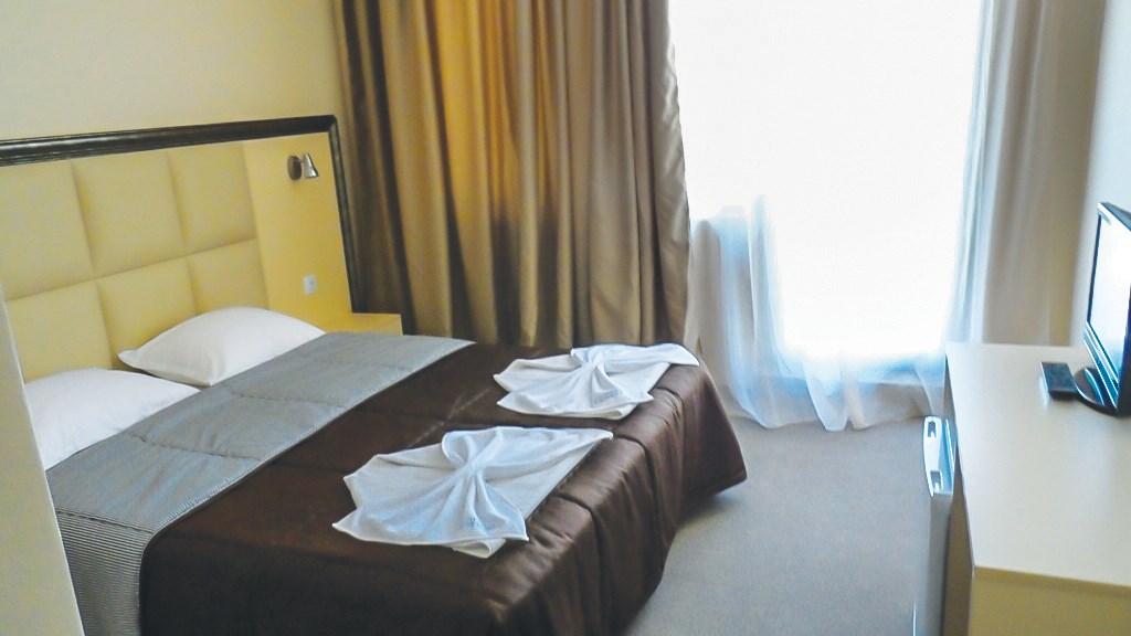 v hlavnej výškovej budove v izbách, štúdiách a apartmánoch • IZBY economy - klimatizované 2-lôžkové izby • IZBY standard - vo vedľajšej budove - 2-lôžkové s možnosťou prístelky • sprcha/WC • sú vkusne zariadené • TV-kábel • chladnička • balkón • detská postieľka na vyžiadanie za poplatok cca 10 Leva/deň • ŠTÚDIÁ pre 2 - 4 osoby - jedna miestnosť • (max. 3 dosp.os. + 1dieťa) • niektoré štúdiá nemajú balkón • APARTMÁNY pre 3 - 5 osôb - 2 miestnosti (musia byť obsadené min. 3-mi plne platiacimi osobami • max. 3 dosp.os. + 2 deti alebo 4 dosp.os.) |