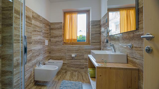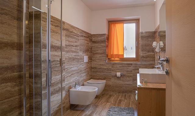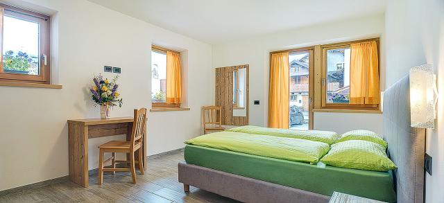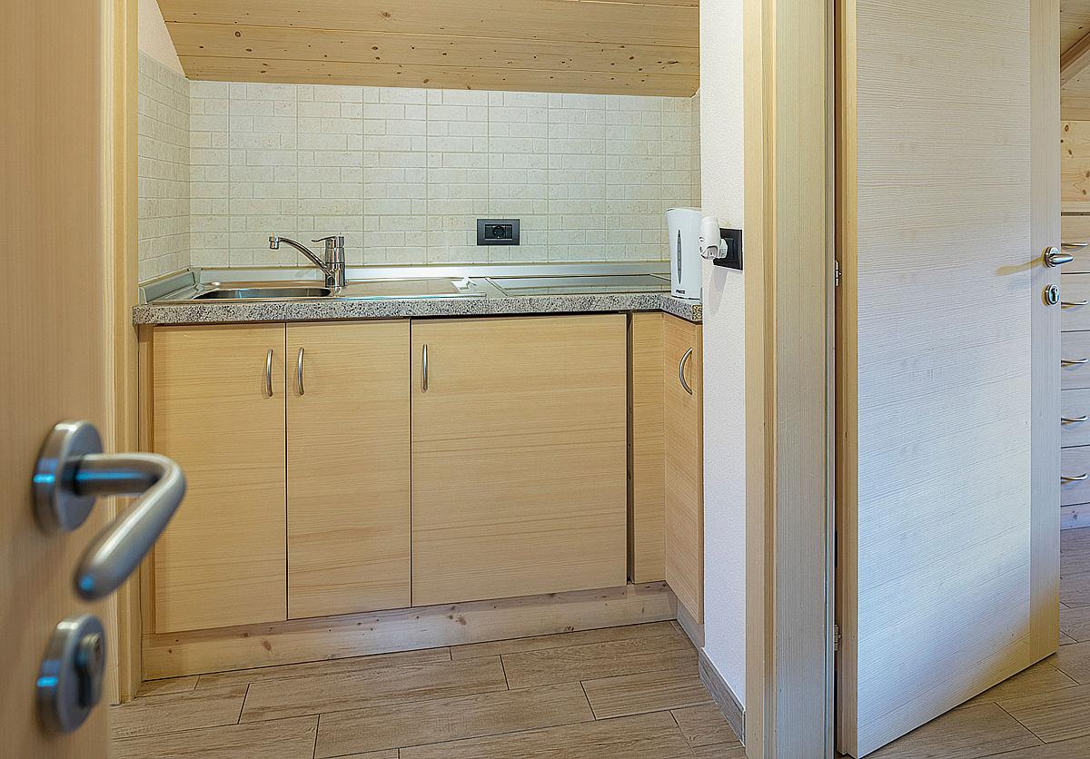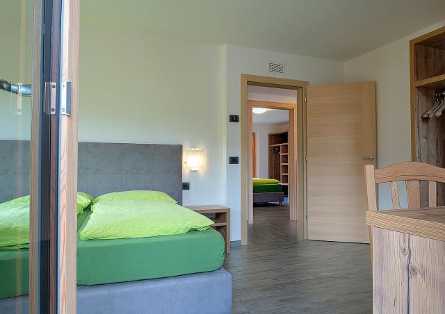 #trilo 4: 58 až 68 m² - 1 spálňa s manželskou posteľou, 1 spálňa s manželskou posteľou alebo 2 samostatnými lôžkami, obývacia izba s kuchynským kútom, 2x sociálne zariadenie spravidla so sprchou; apartmán sa nachádza v prízemí
