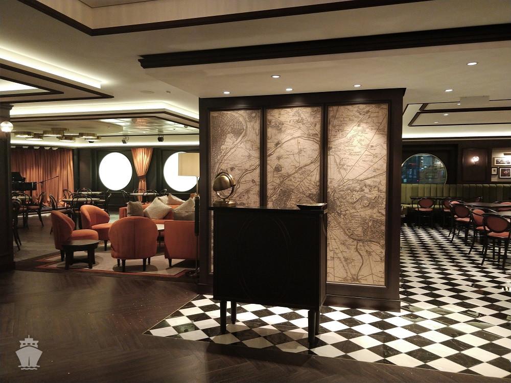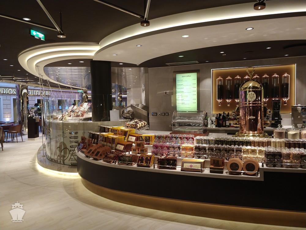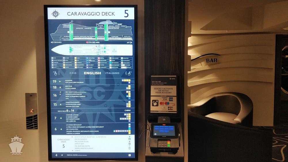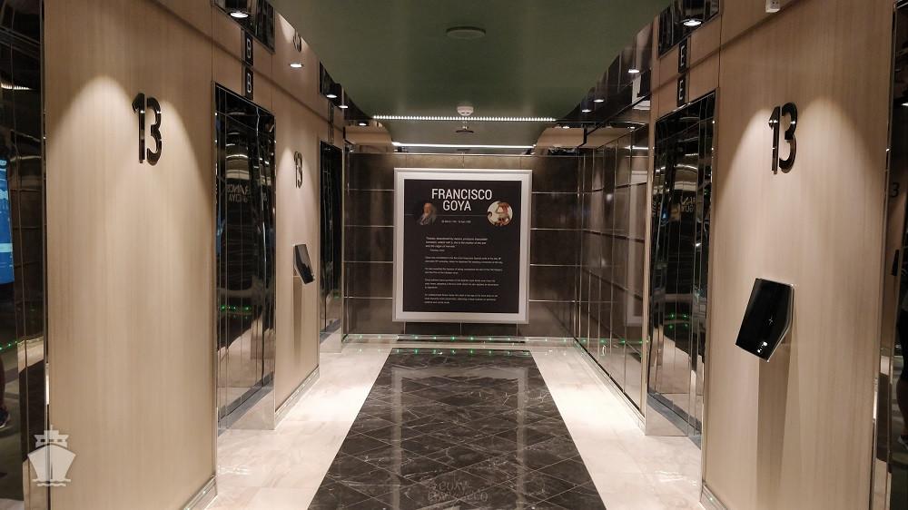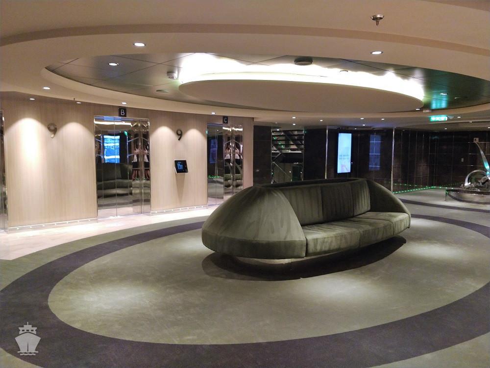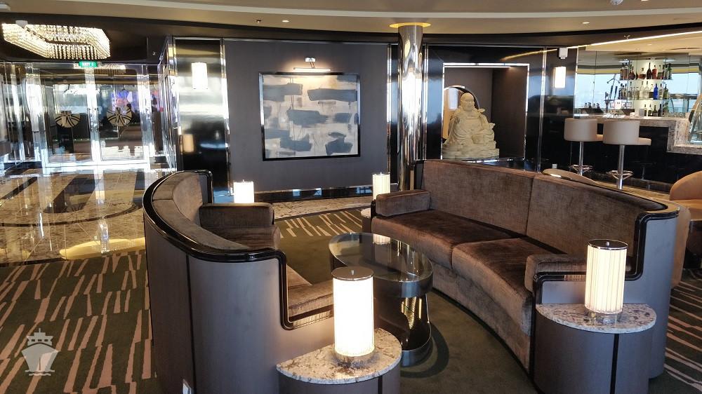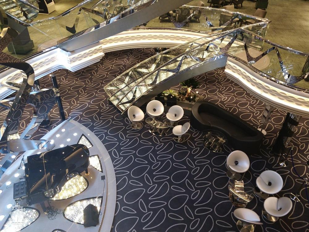 • Dvojúrovňová promenáda s reštauráciami, barmi a duty-free obchodmi, zastrešená 480 m² LED "digitálnou oblohou" s vizuálnymi show
