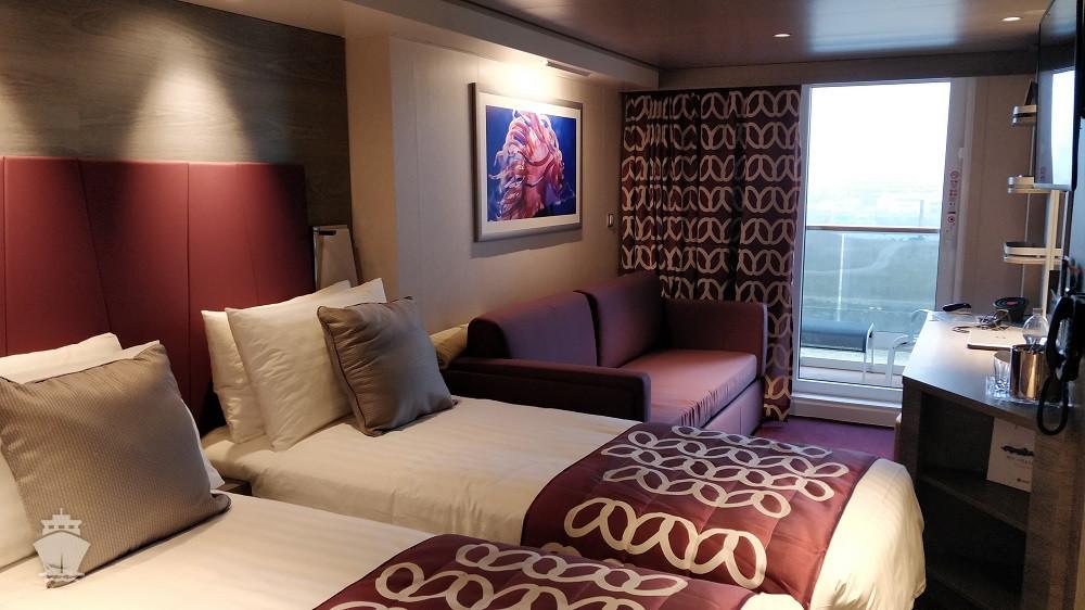 Vo všetkých kajutách sa nachádza regulovateľná klimatizácia, safe, kúpeľňa so sprchou, sušič na vlasy, telefón, interaktívna Tv s plochou obrazovkou, minibar. Oddelené postele sa na požiadanie dajú spojiť do manželskej.