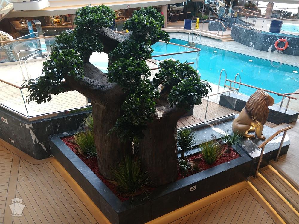 • 4 bazény vrátane 25 m bazénu Atmosphere so špeciálnym nočným osvetlením, vnútorného 10 m Bamboo a Horizon bazénu, ktorý sa v noci mení na tanečnú zónu. Vírivky.