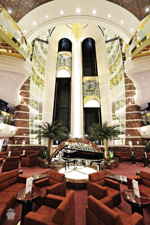Zábava a ďalšie aktivity: divadlo The Strand Theatre, kino, 4D kino, galéria, knižnica, internetová kaviareň, vinotéka, poker room, fajčiarsky salónik, bary a kluby, obchody a butiky, kasíno Royal Palm, detské centrum a centrum pre mládež, video hry, simulátor F1 a diskotéka Club 33, Yacht Club