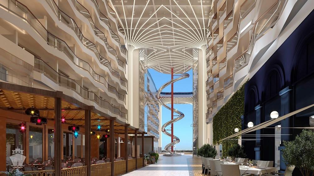 Jedným z kľúčových prvkov lodnej promenády je The Spiral -