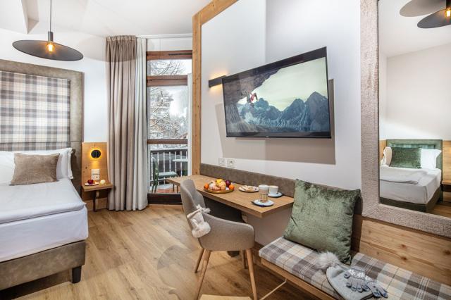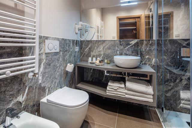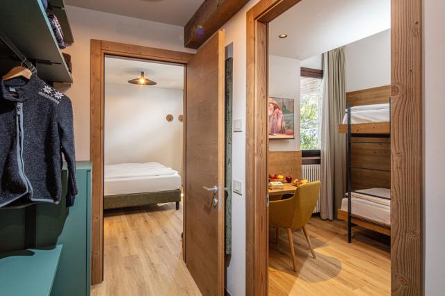#Apartment Superior 4/5: izba s manželskou posteľou a prípadne 1 samostatným lôžkom, izba s 2 samostatnými lôžkami či poschodovou posteľou a prípadne 1 ďalším samostatným lôžkom, sociálne zariadenie so sprchou, zriedkavo balkón; apartmány sú po kompletnej rekonštrukcii