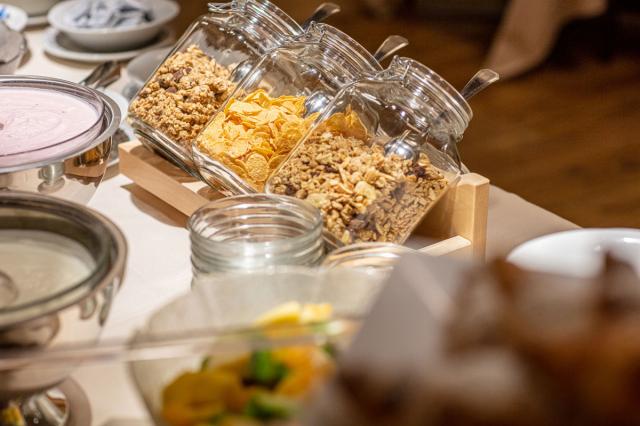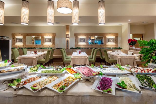 raňajky: formou kontinentálneho bufetu vrátane nápojov#večera: servírované menu s výberom z 3 teplých predjedál a 3 hlavných jedál s prílohou, šalátový bufet, servírovaný dezert, voda (0,5 l) a stolové víno (0,25 l), ostatné nápoje za poplatok