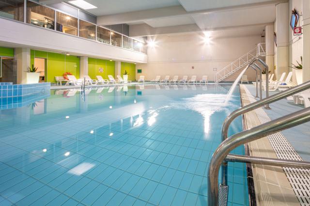 bazén 17 x 7 m s detským bazénikom a vírivkou až pre 7 osôb, sauna*#, para*#, relaxačný kútik*# s ležadlami, biliard, ping-pong; služby označené # môžu využívať len osoby od 15 rokov; v rámci relaxačného centra sú zadarmo ponúkané tiež bylinkové čaje