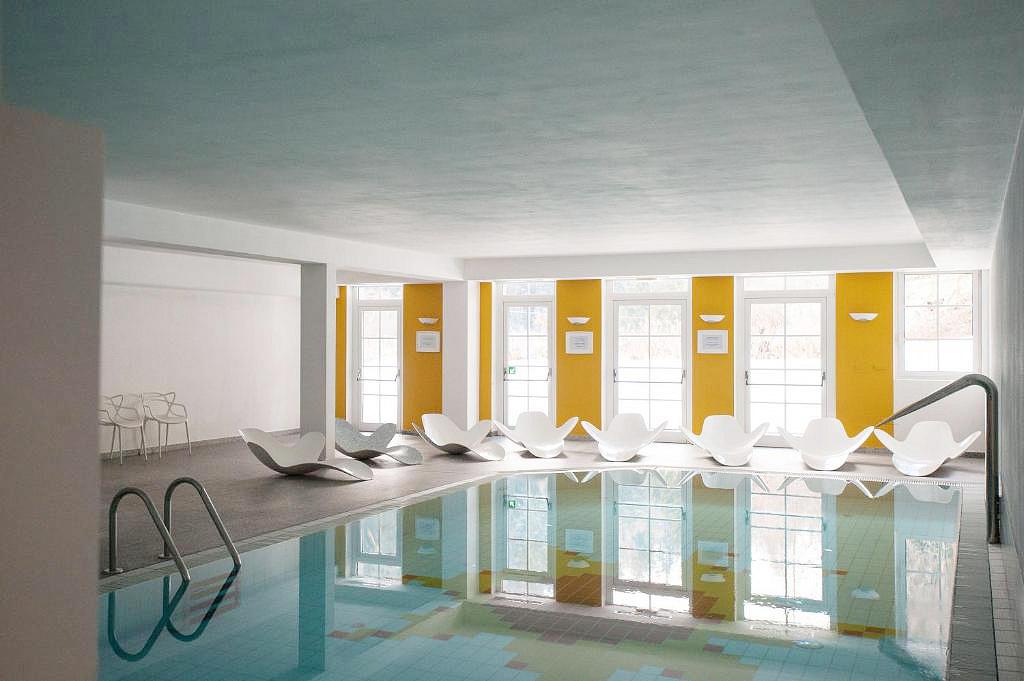 bazén 11 x 5 m s vírivkou, umelým vodopádom a ležadlami,