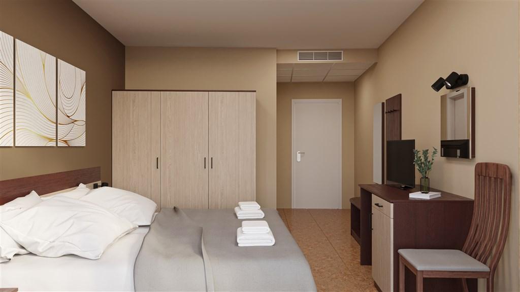 moderne a vkusne zariadené klimatizované izby, apartmány a rodinné izby • IZBY - 2-lôžkové a 3-lôžkové s možnosťou prístelky • APARTMÁNY pre 3 - 4 osoby - spálňa a obývacia miestnosť s rozťahovacím gaučom (max. 3 dosp.os. + 1 dieťa) • RODINNÉ IZBY pre 3 - 4 osoby - 2 miestnosti (max. 3 dosp.os. + 1 dieťa) • sprcha/WC • sušič na vlasy • SAT-TV • minibar • balkón • detská postieľka na vyžiadanie za poplatok cca 10 Leva/deň (obmedzený počet)